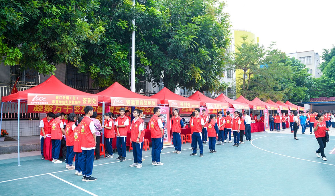 我司負責此次慶祝大會的策劃、設計并執(zhí)行,在廉江中學校園內(nèi)、操場上布置得整齊有序,像一片濃濃的歡慶海洋。在相關(guān)部門及學校的指導和配合下,一場盛大的慶祝大會完美的、成功的舉行了。