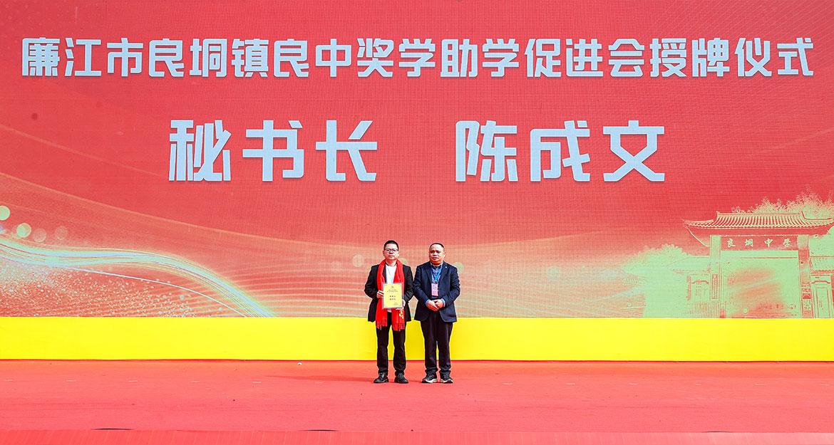 陳榮、韓陽分別為良垌鎮(zhèn)良中獎(jiǎng)學(xué)助學(xué)促進(jìn)會(huì)會(huì)長、榮譽(yù)會(huì)長頒發(fā)牌匾?;顒?dòng)還為常務(wù)副會(huì)長、副會(huì)長、監(jiān)事長、秘書長等頒發(fā)牌匾。