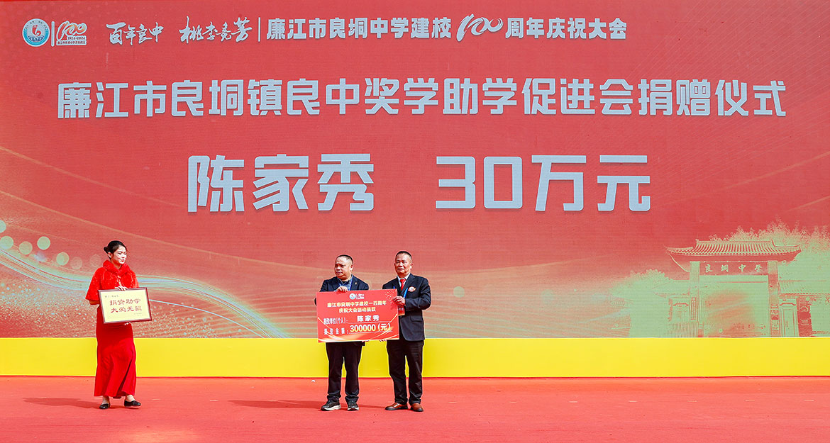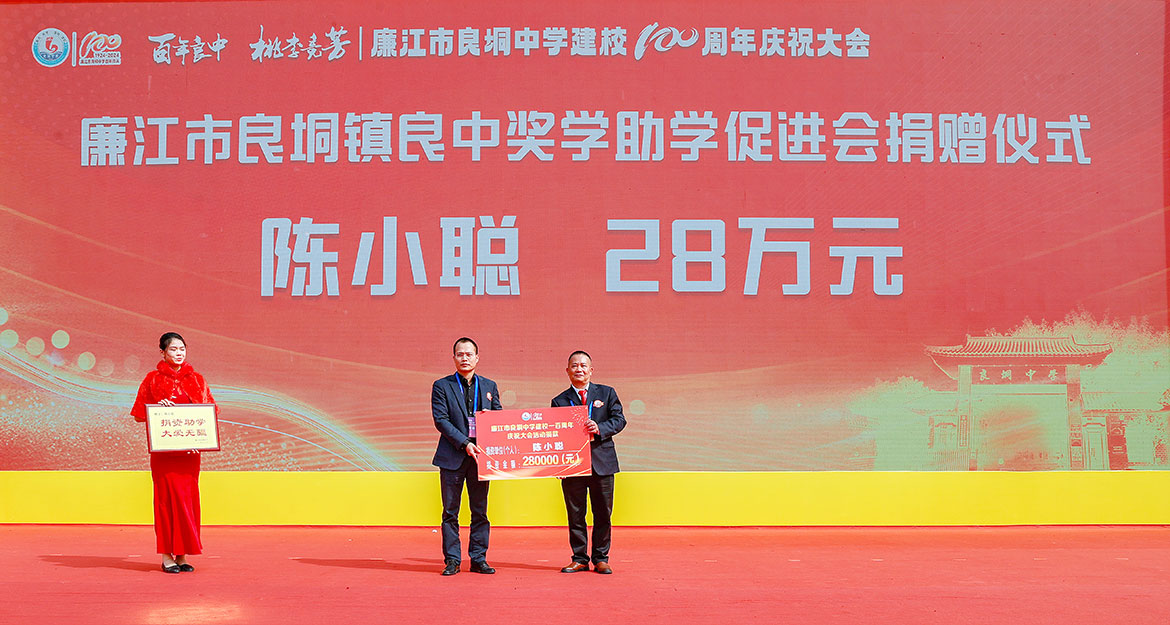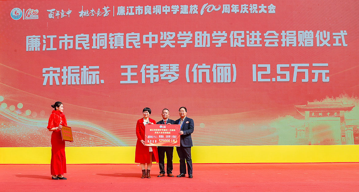 慶祝大會(huì)上,廉江市委書記陳恩才對(duì)良垌中學(xué)建校100周年表示祝賀。他指出,良垌中學(xué)堅(jiān)持培根鑄魂、立德樹人、體教融合,逐漸形成了優(yōu)良的校風(fēng)、教風(fēng)和學(xué)風(fēng)。希望良垌中學(xué)以建校百年為新起點(diǎn),把學(xué)校建設(shè)成為素質(zhì)教育的樣板、人才輩出的搖籃、崇尚創(chuàng)新的典范。希望良垌中學(xué)廣大教師弘揚(yáng)教育家精神,讓更多學(xué)子實(shí)現(xiàn)夢(mèng)想。希望良垌中學(xué)廣大學(xué)子珍惜韶華、勤奮學(xué)習(xí),努力成為建設(shè)偉大祖國、建設(shè)美麗家鄉(xiāng)的有用之才、棟梁之才。希望良垌中學(xué)廣大校友?;丶铱纯矗蝗缂韧刂С至价碇袑W(xué)的建設(shè),支持廉江的教育和經(jīng)濟(jì)社會(huì)發(fā)展。