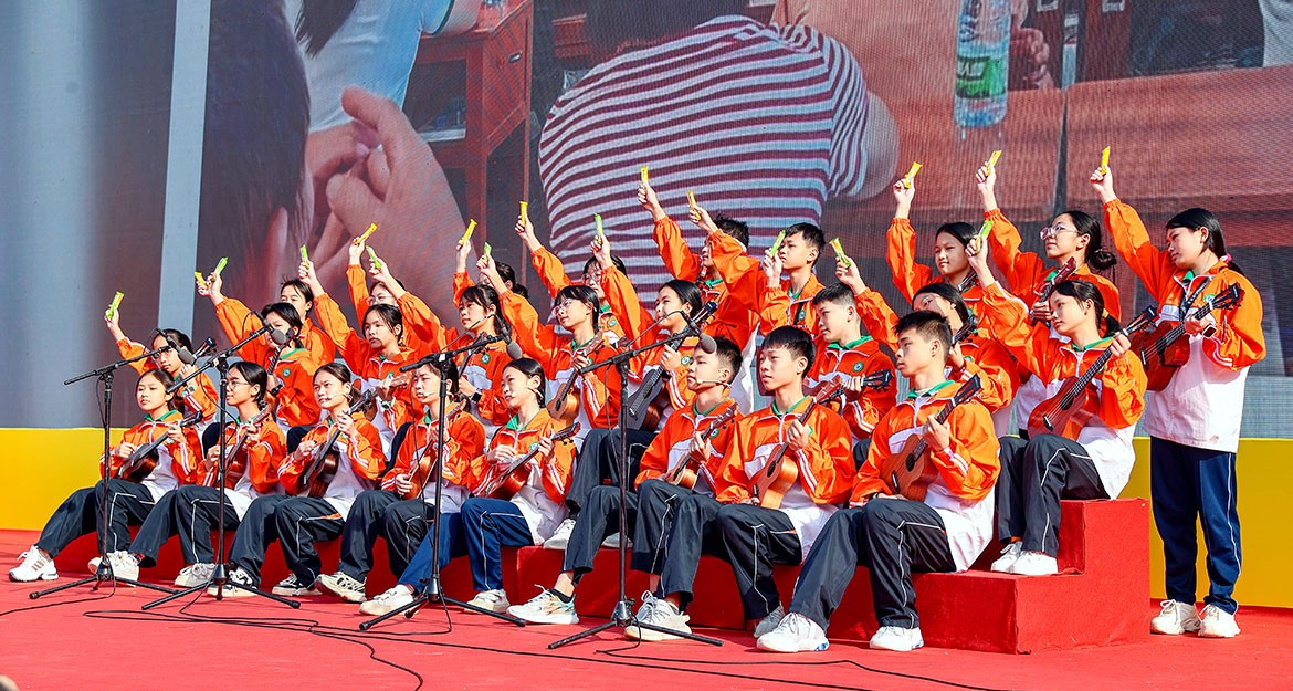 良垌中學(xué)的師生們還精心準(zhǔn)備了豐富多彩的文藝節(jié)目,共同用旋律和歌聲慶祝母校百歲生日。