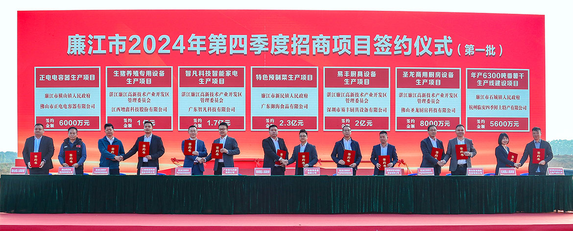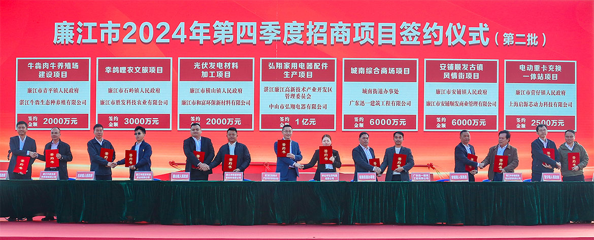 12月31日,廉江舉辦2024年第四季度招商項(xiàng)目簽約暨重點(diǎn)項(xiàng)目集中動(dòng)工活動(dòng),45個(gè)項(xiàng)目集中簽約、動(dòng)工總投資額92.07億元,掀起廉江建設(shè)新一輪的奮進(jìn)浪潮,為2025年發(fā)展開(kāi)好局、起好步。