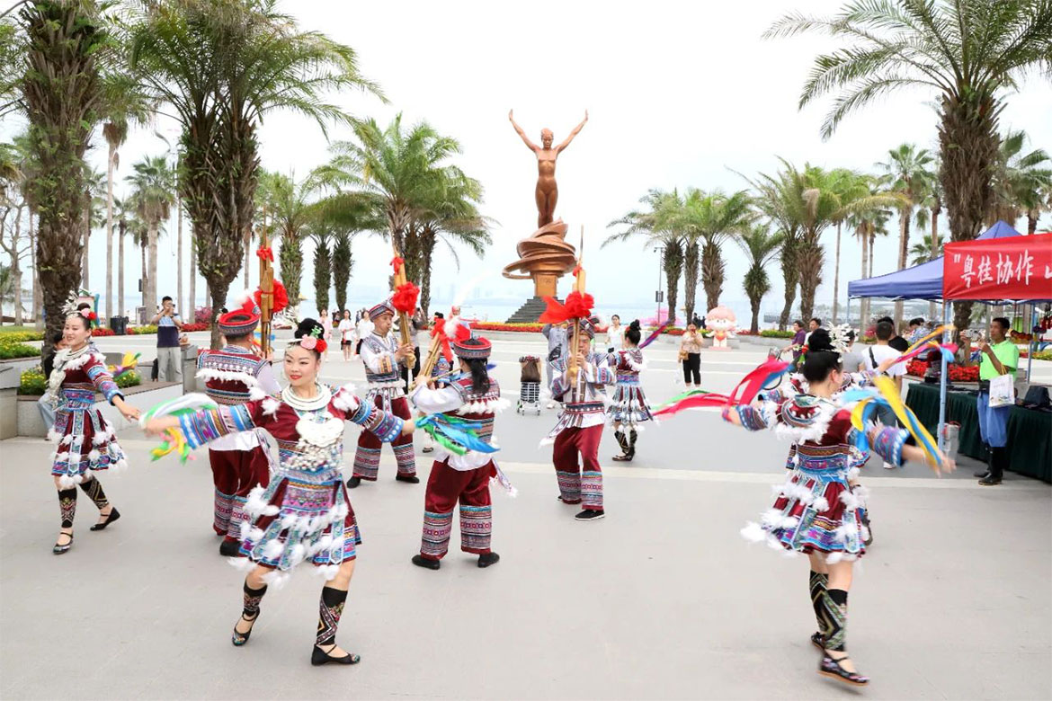 4月12日,活動(dòng)首站在湛江市赤坎老街進(jìn)行,縣文工團(tuán)的演員們身著苗族盛裝,在街頭開展原生態(tài)蘆笙踩堂路演,為本次文旅推介活動(dòng)宣傳預(yù)熱。當(dāng)天下午,在湛江市金沙灣勞麗詩廣場舉行文旅推介和產(chǎn)品展銷活動(dòng),許多市民被蘆笙歡快的節(jié)奏和苗妹靈動(dòng)的舞姿吸引,紛紛駐足欣賞,感受苗鄉(xiāng)熱情與活力。