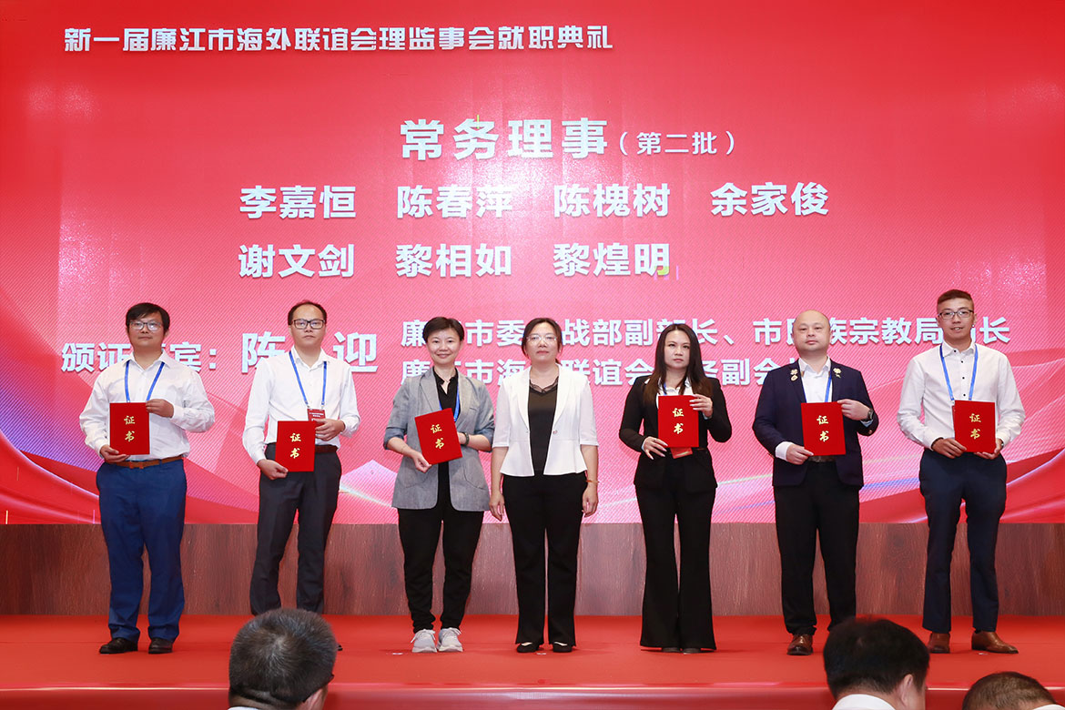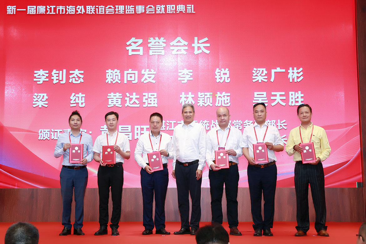 湛江市委統(tǒng)戰(zhàn)部常務(wù)副部長(zhǎng)黃昌旺,廉江市委書記曾平治,市人大常委會(huì)黨組書記、主任陳煒飛,市政協(xié)黨組書記、主席黃大慶等領(lǐng)導(dǎo)及嘉賓出席了就職典禮。